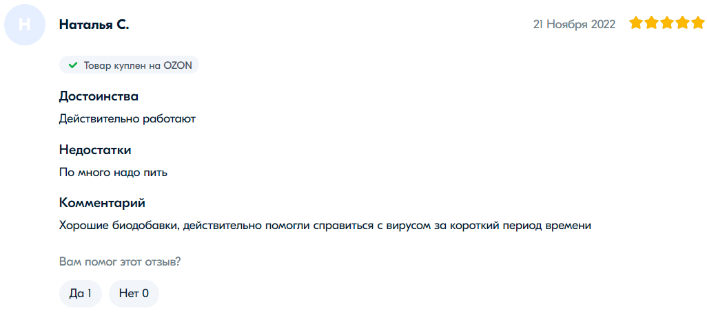 网友“娜塔莉亚·S”:“真的有用。就是每次要服用好多粒。很好的产品,确实有助于在短时间内康复。”