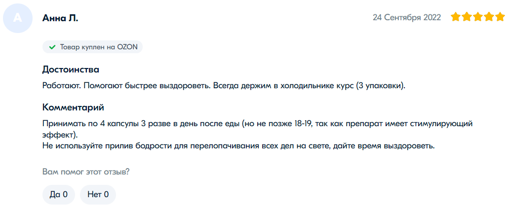 网友“叶莲娜·V”表示:“很好的胶囊。不是第一次购买了。帮助抵抗病毒。”