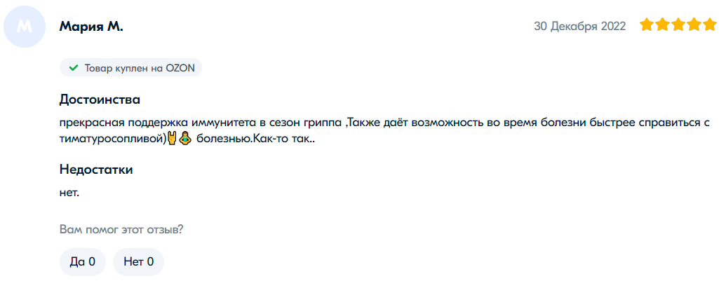 网友“叶莲娜·V”表示:“很好的胶囊。不是第一次购买了。帮助抵抗病毒。”