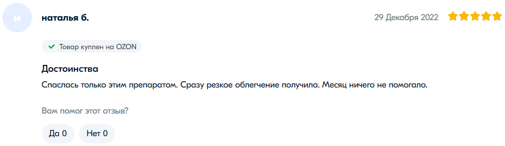 网友“娜塔莉亚”:“被此药所救,身体立即得到解脱。之前曾服用其他药品很长时间,但没有任何效果。”