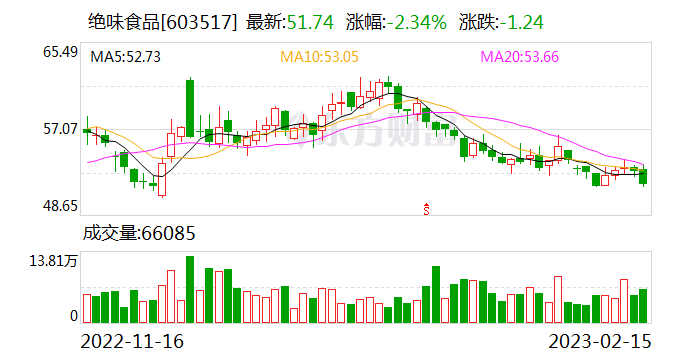 绝味食品此前发布的业绩预告显示,预计2022年实现归属于上市公司股东的净利润为2.2亿元至2.6亿元,同比下降73.49%至77.57%。
